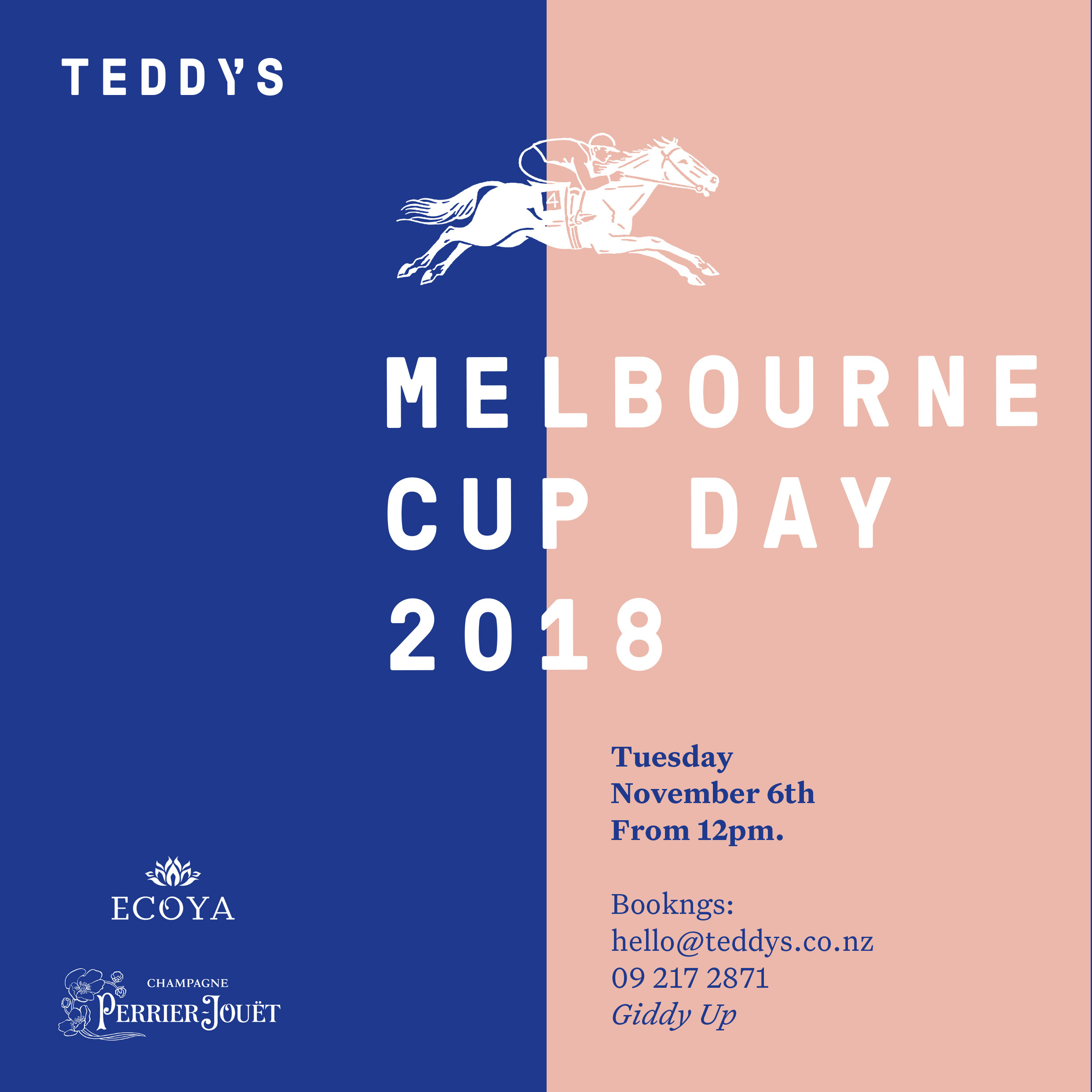 Join us for our first annual Melbourne Cup Day extravaganza. Three-course lunch with a complimentary glass of champagne on arrival, as well as Ecoya gift packs to be won on the day. And as an added bonus, there'll be an Ecoya candle to take home for every person who attends.